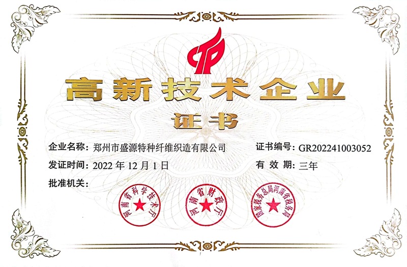 公司在技術(shù)創(chuàng)新領(lǐng)域成果斐然,截至目前,已累計獲得31項專利證書,涵蓋了特種纖維技術(shù)領(lǐng)域等多個方面。憑借刻苦鉆研的實力,榮獲“國家高新技術(shù)企業(yè)證書”、“武器裝備質(zhì)量管理體系認(rèn)證證書”、“鄭州市專精特新中小企業(yè)”、“創(chuàng)新型中小企業(yè)”等名譽(yù)。未來,公司將繼續(xù)加大研發(fā)投入,不斷探索創(chuàng)新,力爭在專利領(lǐng)域取得更多突破性的成果,為公司的持續(xù)發(fā)展和行業(yè)進(jìn)步提供強(qiáng)有力的技術(shù)支撐。
